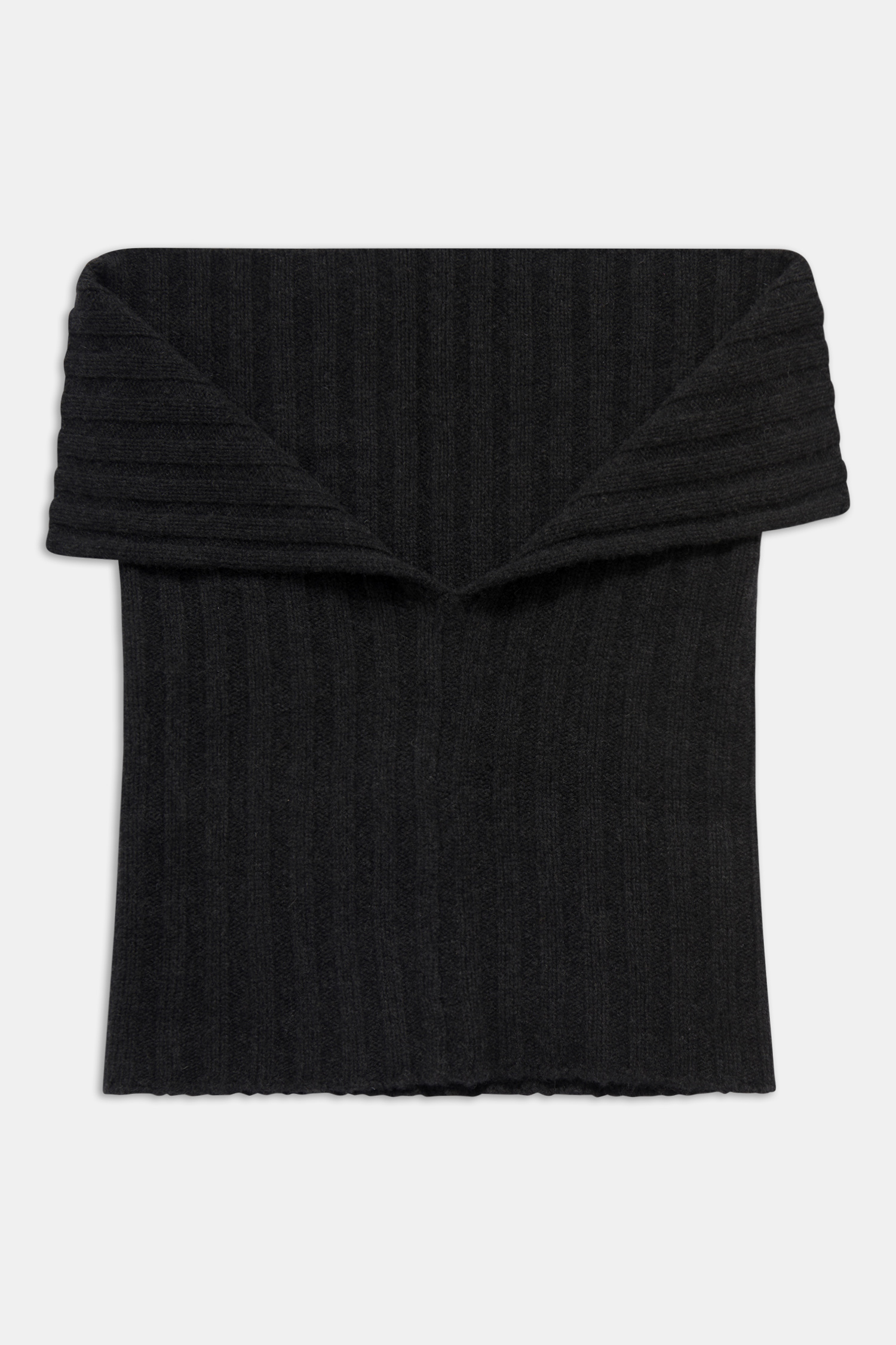 Ribbad halsduk i kashmir. Halsduken är ihopsydd och dras över huvudet.