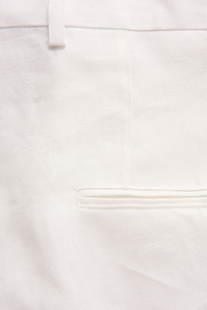 Byxa i en helt rak passform med en hög midja, dubbla frontveck och bälteshällor. Gjord i ett fint och luftigt linnetyg.